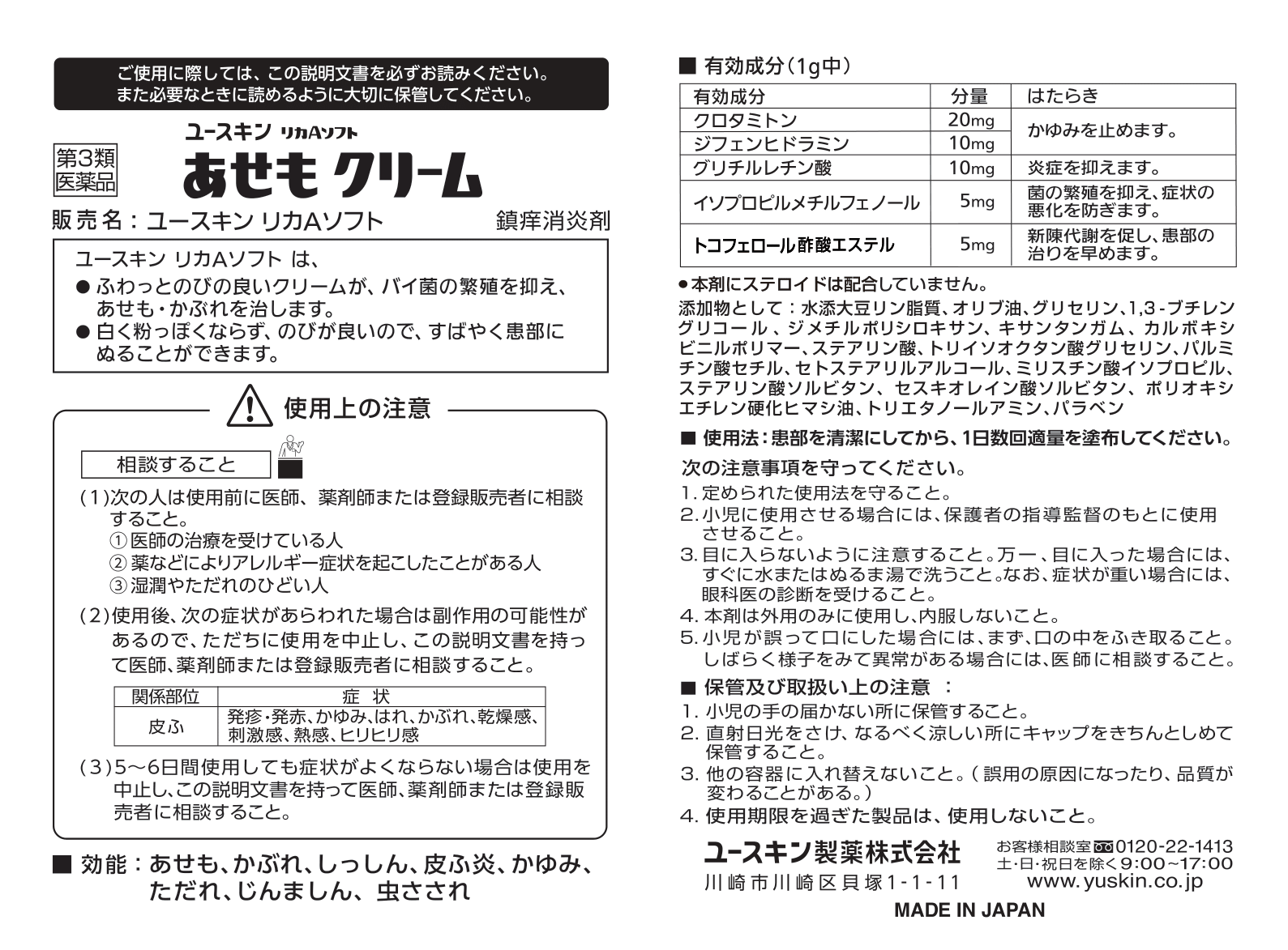 | 成分 | ●有効成分(1g中) クロタミトン(鎮痒成分):20mg、ジフェンヒドラミン(抗ヒスタミン成分):10mg、グリチルレチン酸(抗炎症成分):10mg、イソプロピルメチルフェノール(抗菌成分):5mg、トコフェロール酢酸エステル(血行促進成分):5mg ●添加物 水添大豆リン脂質、オリブ油、グリセリン、1,3-ブチレングリコール、ジメチルポリシロキサン、キサンタンガム、カルボキシビニルポリマー、ステアリン酸、トリイソオクタン酸グリセリン、パルミチン酸セチル、セトステアリルアルコール、ミリスチン酸イソプロピル、ステアリン酸ソルビタン、セスキオレイン酸ソルビタン、ポリオキシエチレン硬化ヒマシ油、トリエタノールアミン、パラベン ※本剤にステロイドは配合していません。 |